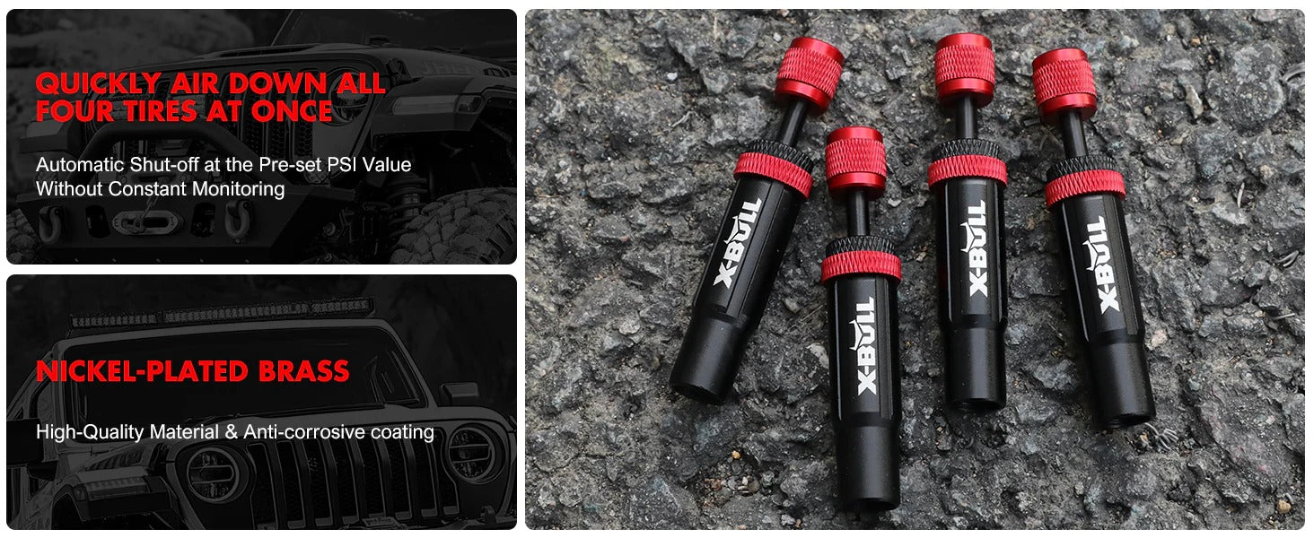 X-BULL Desinfladores de neumáticos válvula ajustable de 15 a 30 PSI (4 unidades)
